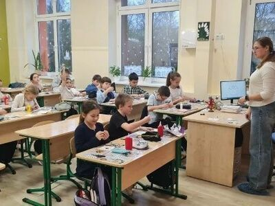 На предновогодней неделе в 4-Э классе прошел необычный урок, который провели мамы. Под их руководством ребята сделали игрушку на елку. Но главное даже не результат, а процесс. Ведь это так непривычно и интересно, когда урок ведут мамы