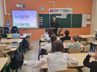 В преддверии Дня Защитника Отечества учащиеся 4-Э вместе с родителями собирали посылки для участников СВО. На уроках рисования и труда ребята изготовили открытки и рисунки, которые будут переданы бойцам на линию фронта. Дорогим гостем классного часа стал папа одного из учеников 4-Э класса — участник боевых действий СВО. Он пришел в класс рассказать ребятам о Специальной военной операции.