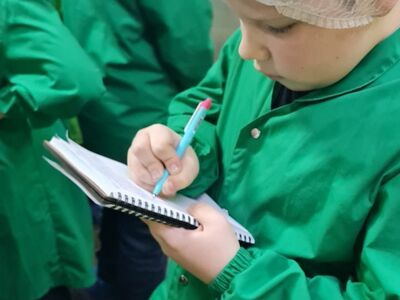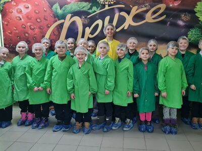 На тематической неделе «Исследовательская лаборатория: Математика вокруг нас» обучающиеся 4-Э класса собирали математическую информацию на конфетной фабрике «Фруже». Ребята записывали время отъезда и время приезда, начало и конец экскурсии, сколько конфет оборачивают в минуту, сколько грамм мармелада в одной конфете и т.п. В школе на внеурочной деятельности учащиеся составили задачи про экскурсию на фабрику, основываясь на собранных числовых данных. Все задачи объединили в общеклассный математический проект «Математика на Фруже»