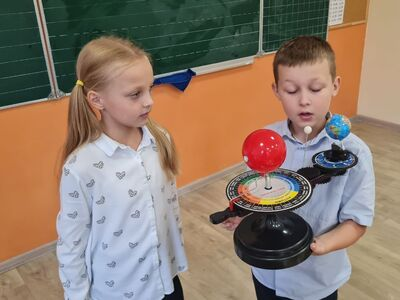 На тематической неделе «Экспериментариум: путь к познанию» учащиеся 4 класса эффективной начальной школы изучали Солнечную систему. Ребята работали с макетом Солнечной системы: моделировали смену дня и ночи, смену времен года, лунное и солнечное затмение. В завершение ученики изготовили модели Солнечной системы из картона и пластилина.
