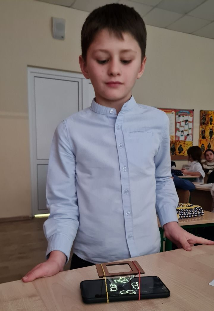 На тематической неделе «Экспериментариум: путь к познанию» обучающиеся 4-Э класса познакомились с голограммой. Голограмма — это трехмерная запись светового поля, которая позволяет воссоздать объемное изображение объекта, меняющееся в зависимости от угла зрения, как в реальности. Ребята собрали модель для демонстрации голограммы. Изображение передавалось из специальной программы по мобильному телефону. Чудеса своими руками!